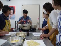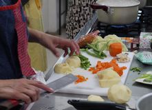 | Teacher prepared vegetables by hand, while we minced vegetables with cutting board. |