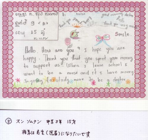 IACでは、引き続き漆原恭子さんを通じて支援金をお渡しし、子供たちの奨学支援金として使われていきます。 |